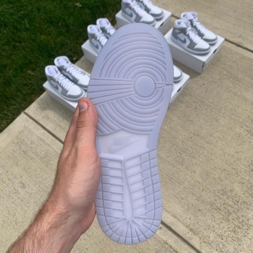 Jordan 1 Mid Wolf Grey Aluminum With (White & Light Blue )